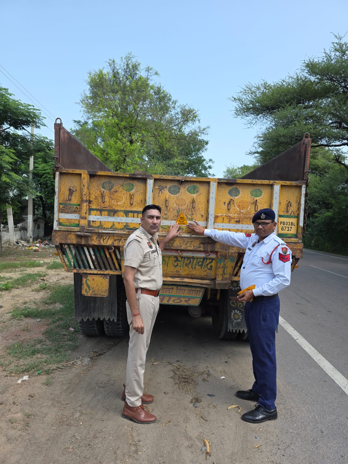सिरसा। जिला यातायात प्रभारी निरीक्षक शमशेर सिंह गुरुवार को अपने दलबल के साथ शहर के विभिन्न महत्वपूर्ण क्षेत्रों में उतरे और बड़े वाहनों के पीछे रिफलेक्टर लगाकर उन्हें यातायात नियमों की पालना के लिए प्रेरित किया। जिला यातायात प्रभारी निरीक्षक शमशेर सिंह ने अपने नेतृत्व में हिसार रोड़, डबवाली रोड़, सांगवान चौक व बाबा भुम्मणशाह चौक आदि में ट्रकों, निजी स्कूलों की बसों, टे्रक्टर ट्रॉली व पिकअप आदि के पीछे रिफलेक्टर आदि लगाकर वाहन चालकों को यातायात नियमों की पूरी पालना करने की हिदायतें दी। उन्होंने कहा कि आने वाले समय में सर्दी का मौसम आरंभ हो जाएगा और ऐसे में धुंध का भी वाहन चालकों को सामना करना पड़ेगा। धुंध में दुर्घटनाओं से बचने के लिए उपरोक्त वाहनों के पीछे रिफलेक्टर लगाया जाना बेहद अनिवार्य है। इनके लगाए जाने से हादसों पर काफी हद तक अंकुश लग सकेगा। निरीक्षक शमशेर सिंह ने कहा कि यातायात नियमों की अवलेहना किसी भी सूरत में बर्दाश्त नहीं किया जाएगा और ऐसे वाहन चालकों के खिलाफ कड़ी कार्रवाई की जाएगी।