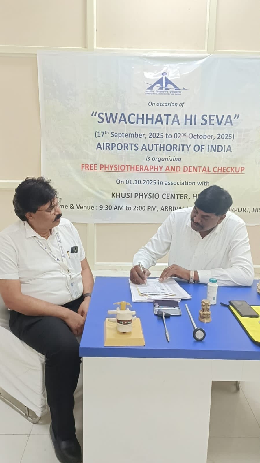 हिसार। फिजियोथेस्टि नरेश जांगडा ने हिसार में डा. गरिमा, डा. निताशा   नरेश जांगडा फिजोयथैरैपिस्ट    महाराज एयरपोर्ट पर कैंप लगाकर पचास लोगों का निशुल्क इलाज किया। डा. गरिमा, डा. निताशा नरेश जांगडा फिजोयथैरैपिस्ट ने इस दौरान कमर दर्द, घुटनों का दर्द, कमर दर्द, हाथ के कोहनिया का दर्द, एड़ी का दर्द जैसे मरीजो की निशुल्क जांच की गई। कमर दर्द की लोगों में काफी समस्या बढ गई है ज्यादा बैठ कर काम करने से मोटापा बढ़ने से ये समयाए ज्यादा हो रही है। इसी दौरान डायरेक्टर एयरपोर्ट मुकेश यादव ने डा. नरेश जांगड़ा को प्रमाण पत्र देकर सम्मानित किया। उल्लेखनीय है कि फिजियोथेरेपिस्ट नरेश जांगडा सौ से अधिक कैसे बना और पंद्रह हजार लोगो का निशुल्क इलाज करवा चुके है। समय निकाल कर अनाज मंडी स्थित भूमि आश्रम में मुकेश कुमार के साथ मिल कर अपनी वहां रहे रहे बेसहारा लोगों का निशुल्क इलाज करते है